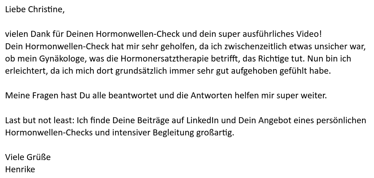 Ein auf der Zellbiologie basierendes System, das benennt, was Wechseljahresbeschwerden wirklich anzeigen. Und natürlich, wie du die Weichen stellst für langfristige Gesundheit. Das ist kein Heilversprechen, aber ohne Berücksichtigung de universellen HER-Systems ist es einfach nicht möglich.